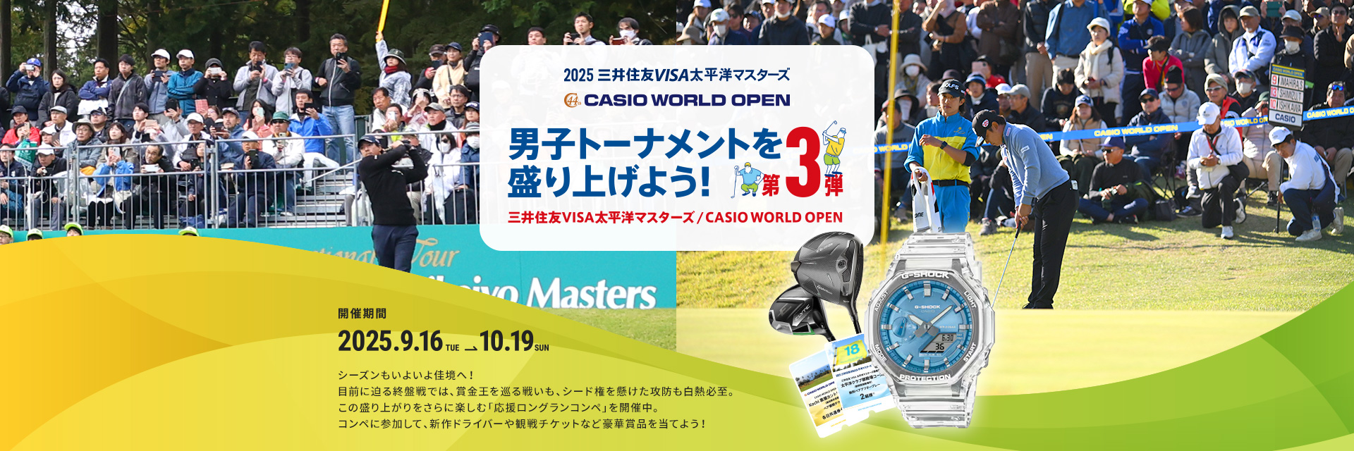 - 抽選で計12名様に下記賞品をプレゼント 三井住友VISA太平洋マスターズ 無料ペアアフタープレー券 2名様 ペア観戦チケット(各日共通券) 4名様他