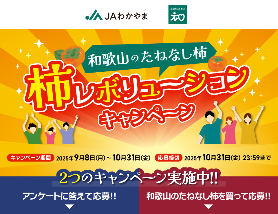 - 抽選で30名様にえらべるPayが当たる「和歌山のたねなし柿 柿レボリューションキャンペーン」