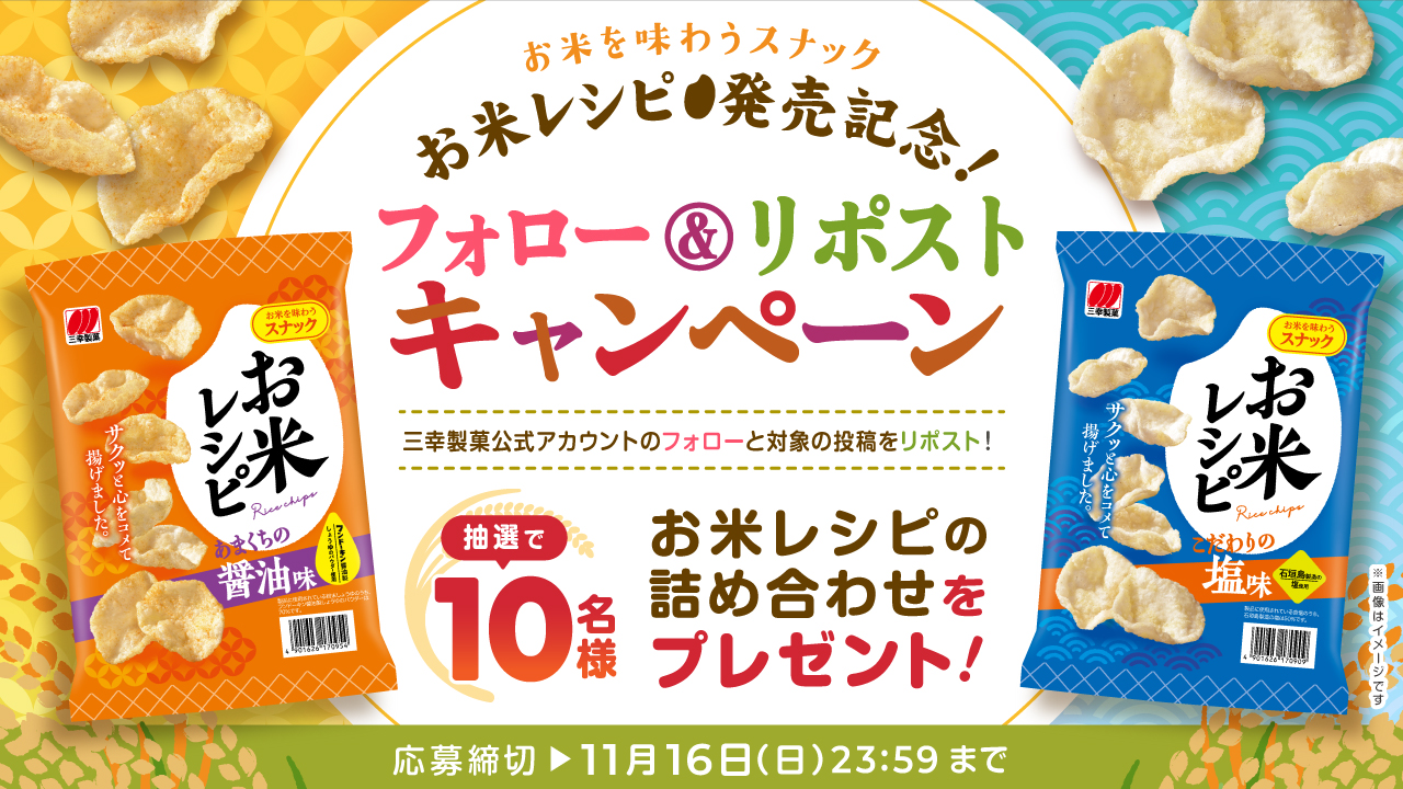 - 抽選で10名様にお米レシピの詰め合わせをプレゼント! お米レシピの詰め合わせ(計10袋)・・・「44g お米レシピ」、「44g お米レシピ」各5袋ずつ(計10袋)