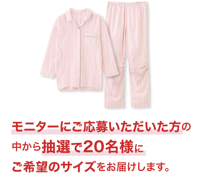 - 抽選で20名様に3D設計 快眠パジャマ[ピンクストライプ]をお届けします。