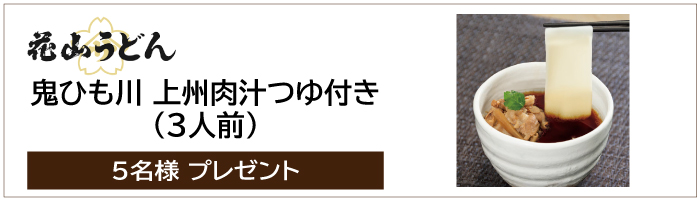- 花山うどん「鬼ひも川 上州肉汁つゆ付き(3人前)」を5名様にプレゼント!