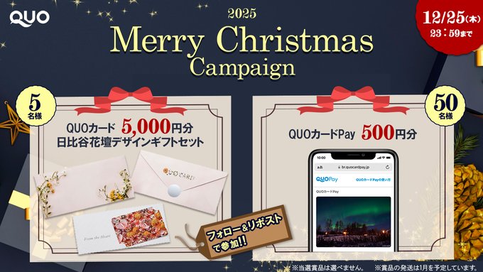 - QUOカード:5,000円分×5名様 QUOカードPay:500円分×50名様