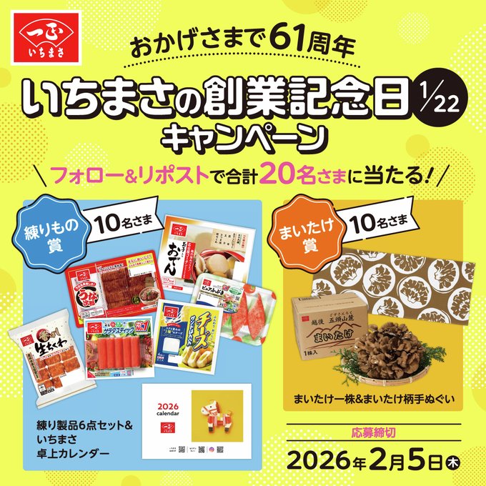 - いちまさ の練りもの&まいたけを合計20名さまにプレゼント