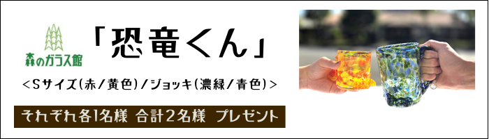 - ちょこんと可愛い足が魅力! 森のガラス館「恐竜くん」Sサイズ(赤/黄色)/ジョッキ(濃緑/青色)をそれぞれ各1名様合計2名様にプレゼント!