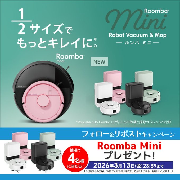 - 抽選で4名様に「Roomba Mini」をプレゼント