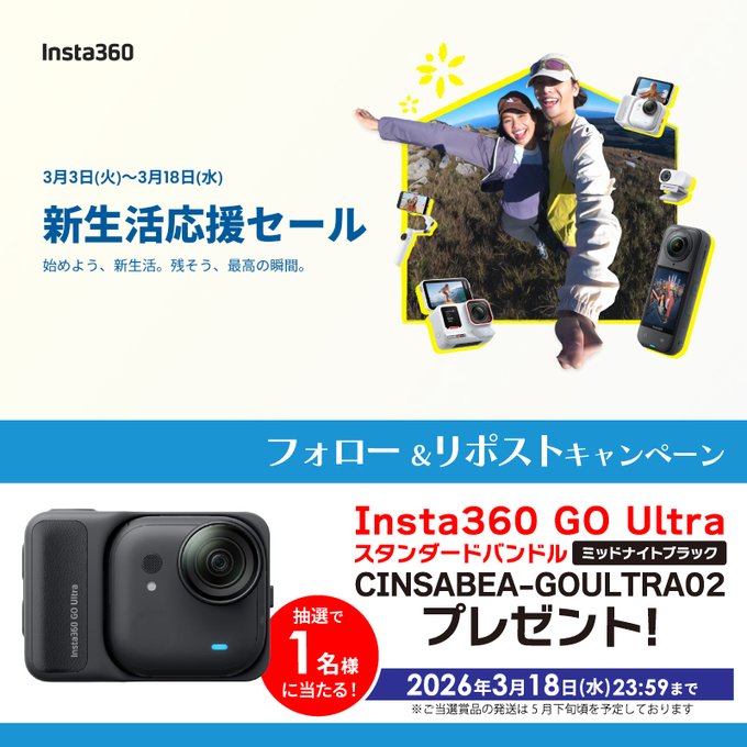 - 抽選で1名様に「Insta360 GO Ultra」をプレゼント