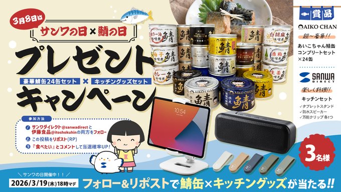 - あいこちゃん鯖缶コンプリートセットとキッチングッズセットを3名様にプレゼント