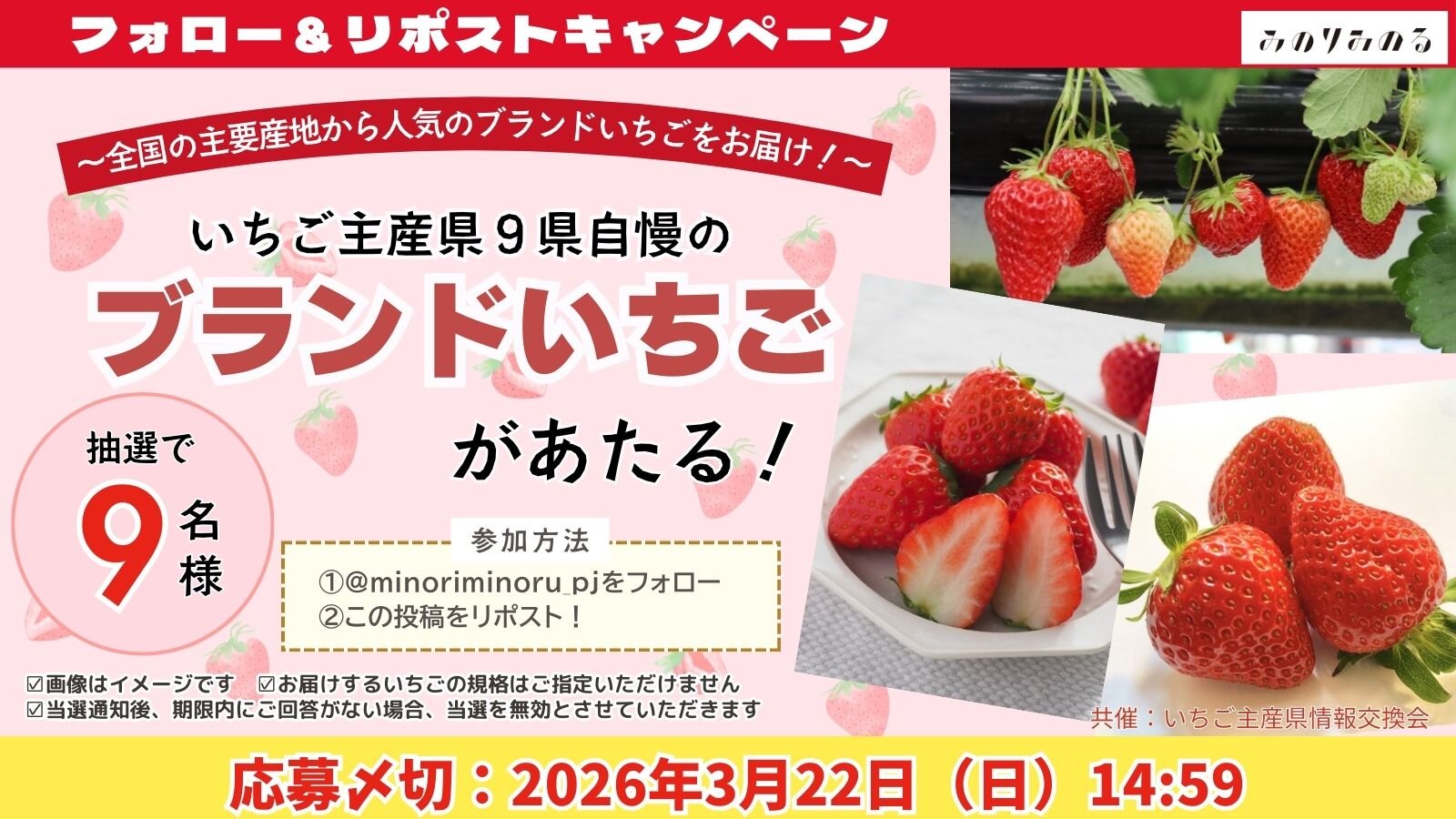 - いちご主産県の「ブランドいちご」を9名様にプレゼント