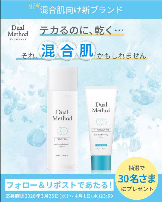 - テカリ・乾燥を同時にケアする ・混合肌用2層式化粧水 ・混合肌用仕込み下地 抽選で合計30名さまにプレゼント