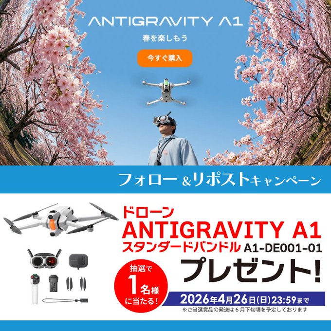 - 抽選で1名様に「ドローン ANTIGRAVITY A1」をプレゼント