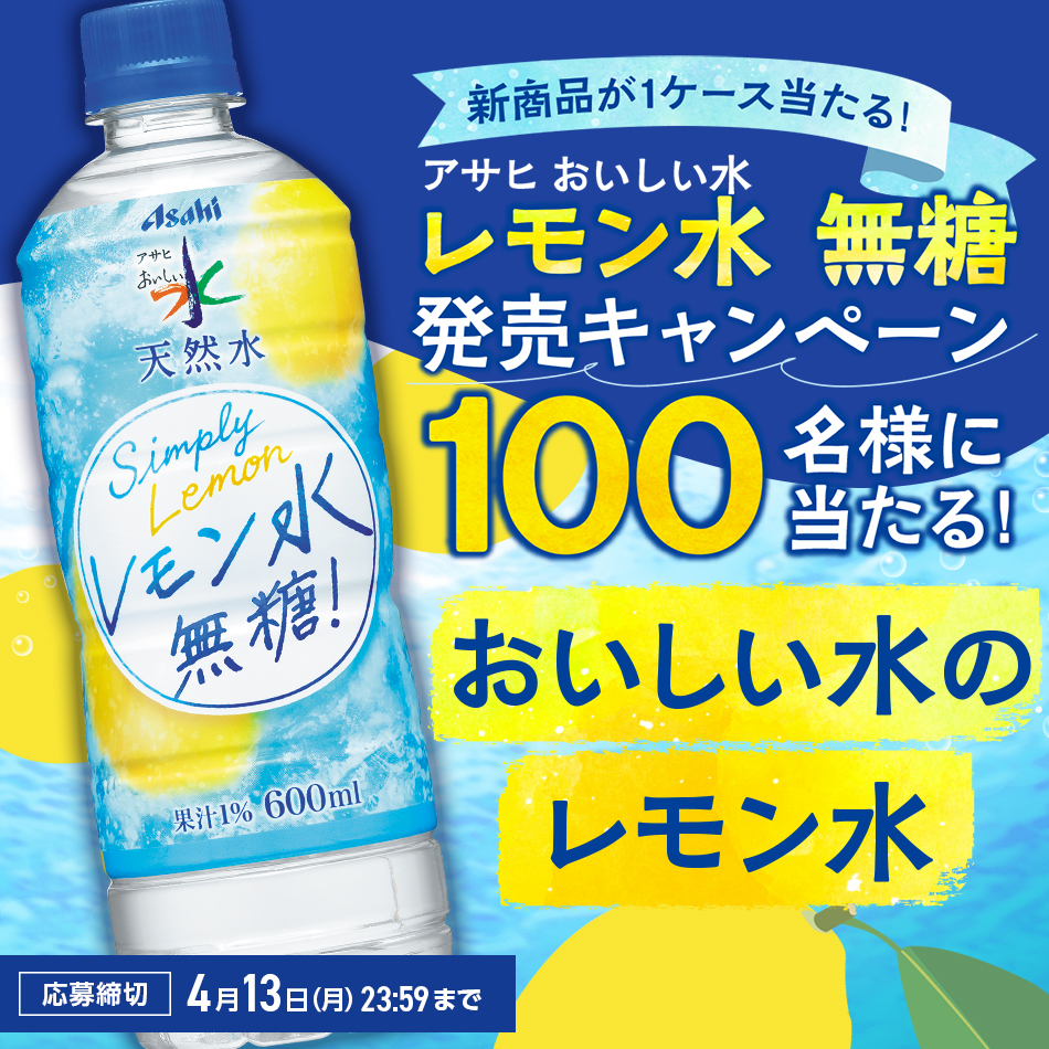 - アサヒ おいしい水 天然水 レモン水 無糖 1ケース(PET600ml×24本) 100名様